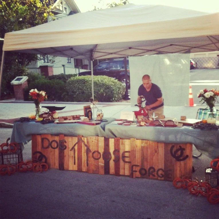 Needing a place to sell our newly fired artistry, the forge started with a pop-up tent and a homemade sign at the Lakeland downtown farmer’s market. Now, I love a good farmers' market, but I have to tell you--sitting at a farmers’ market for hours on end every Saturday is tough, especially when the earnings are low and you have a couple of kids who would much rather be doing just about anything else. Still, after one fall season of Saturdays, we built up a local customer base that allowed us to open a small storefront, a website, and (most importantly) let us stop going to the farmer’s market. Lakelander Magazine even did a article on DHF that ended up on the cover, and as they say, we were off to the races!