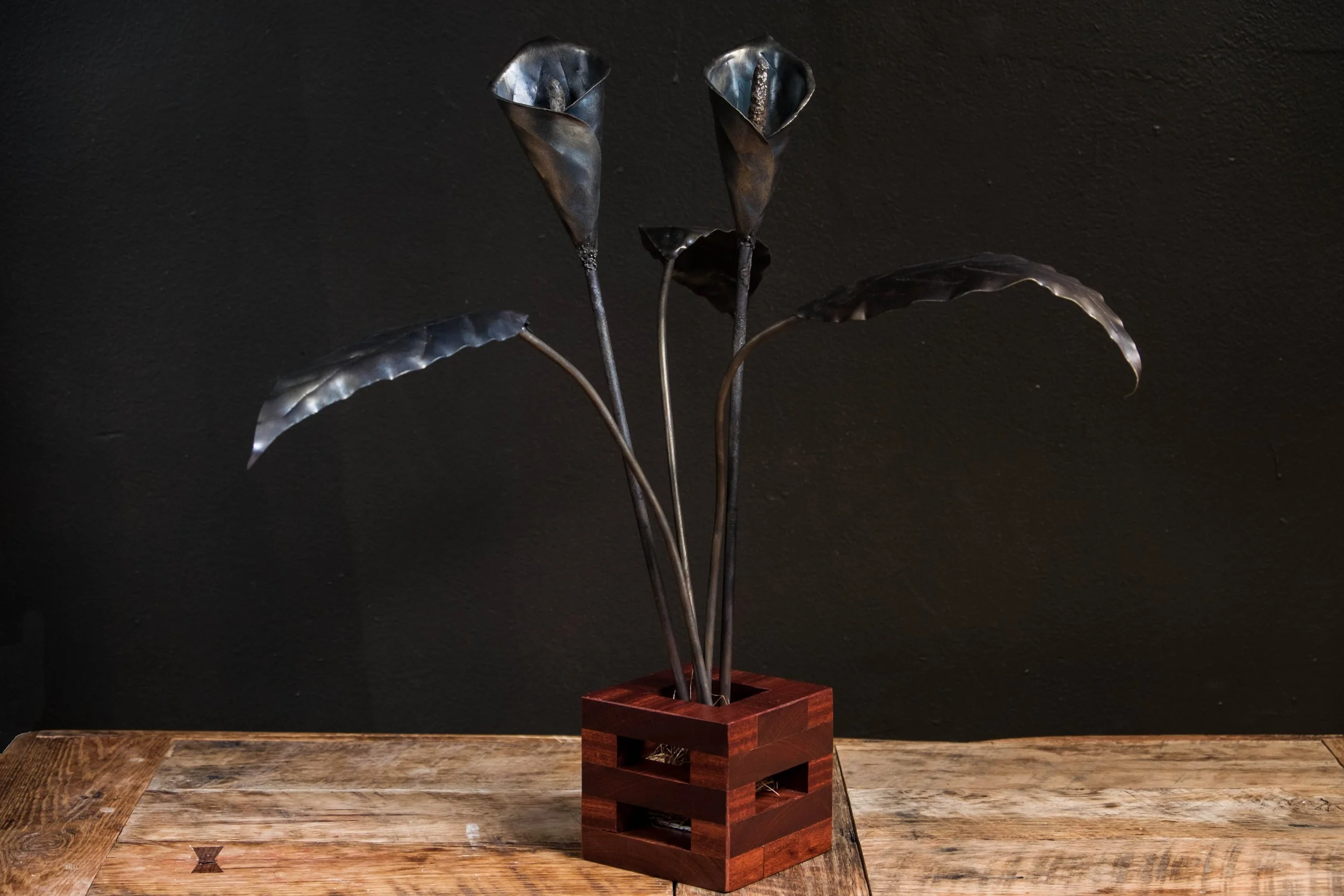 In this process I found a passion for creating useful art. At The Doghouse, we made everything from forged drawer handles and hooks to chicken coops, decorative hardware, and even cutting boards. Each project taught me something new about the process, the next edge. My day job as a farrier lent itself quite well to the fired arts. Eventually, using the forge, kiln, and torch to create the things I saw inside my brain equated to a decent collection of knowledge (and tools).